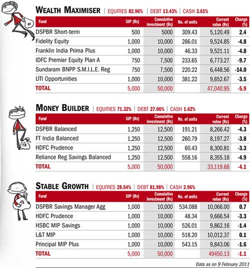 The low-risk Income Generator was the only portfolio to give a positive return. With 81.98 per cent of the funds in debt, the portfolio earned a 2.96 per cent absolute return. Majority of debt instruments (44.56 per cent) have a P1+ rating which indicates that these short-term instruments offer the highest degree of safety with regard to timely payment of financial obligations.