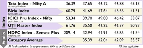 | | Tata Index Fund, tops the charts, beating its benchmark Nifty over the past one year. This underlines the virtues of investing in index funds, especially in a rising market. In the midcap category Reliance Growth is fast overtaking other funds in performance. |