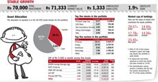 The stable growth portfolio has earned a return of 1.9%. The lowrisk portfolio has 63.88% of its funds parked in debt which may be effected by future rate hikes. If we look at the equity portfolio, which has been allocated 30.32% of the total investments, the highest holdings are in the financial sector (25.11% of the equity holdings).