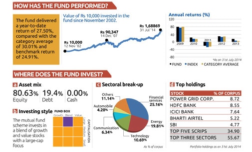 This is a dynamic asset allocation fund which seeks to move money from equities to fixed income securities depending on the market conditions. The idea is to reduce equity exposure when the markets are overpriced. This move is formula driven, and not decided actively by the fund manager. Does the formula work? It appears so. With the exception of 2007, the fund has always risen more than the benchmark in a rising market and fallen less in a falling market.The fund's protective asset allocation and its manager's superior stock selection has given the fund an enviable track record of impressive gains.