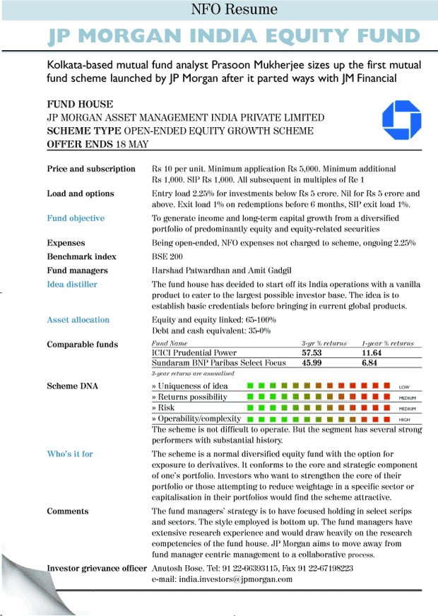 Our analyst sizes up the first mutual fund scheme launched by JP Morgan after it parted ways with JM Financial.