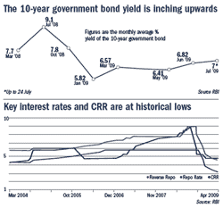 The RBI’s monetary policy turned out to be a non-event for the bond market, as it was in line with expectations. The result was that government security yields remained unchanged (10-year paper was at 6.95%). “However, with growth picking up and inflation likely to rear its head towards the end of the year, we expect yields to move higher in the medium term to 7.5-7.75% by March 2010,” says Ramanathan. In fact, with the base effect coming into play and in the wake of a rebound in global commodities prices, the RBI has already upped its inflation expectation from 4% to 5% by March 2010.
