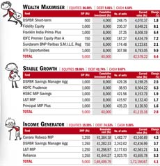 The other portfolios have also performed well. The aggressive Wealth Maximiser, with 86 per cent funds in equity, has given the highest return of 6.4 per cent, while the debt-oriented Income Generator has earned a return of 4.1 per cent. The low-risk Stable Growth, which we shall study in detail in the next issue, delivered a return of 2.8 per cent.
