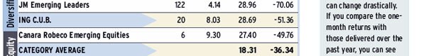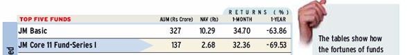 We show you how the fortunes of funds can change drastically. If you compare the one-month returns with those delivered over the past year, you can see that the top funds were also the biggest losers when the markets fell.