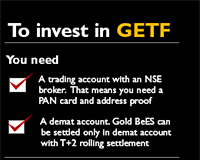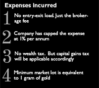 The market lot will cost roughly as much as 1 gm of gold. But you cannot flaunt your ownership at a social occasion. A GETF is “virtual”—it tracks the price of gold but it cannot be converted to the metal. The handling expenses are capped at 1% of the total value of units held per annum. You also pay brokerage every time you trade an ETF—the rates typically range from 0.25% to 0.5%. The “slippage” is a lot less than the commissions and discounts most jewellers will charge on physical metal. And there are no worries on the purity score either with an ETF.