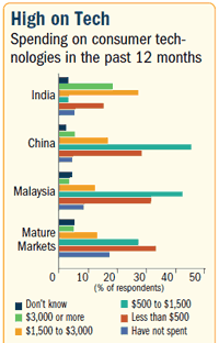 In fact, according to a recent Accenture report titled 'Mobility Takes Centerstage', emergingmarket consumers spent more on technology than those in the mature markets in the past year. Spending was the highest in India, where 77 per cent spent more than $500 per person.
