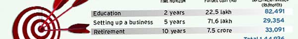 This brings us to the Rs 1.45 lakh that he needs to invest every month. Even though Shukla saves a tidy sum, it falls short of the required monthly investment by a whopping Rs 1.23 lakh. In such a case, it is imperative that we closely scrutinise the targets of the financial plan to ascertain how realistic they are.