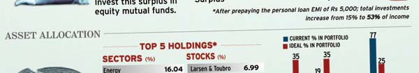 The bad news is that Srivastava doesn’t know where this surplus disappears. “Maybe my credit card bills eat into it or perhaps it’s because I have prepaid nearly Rs 75,000 of the personal loan,” he says. Neither seems like an adequate explanation, so we suggest that he note his expenses for about a month to track down the money.