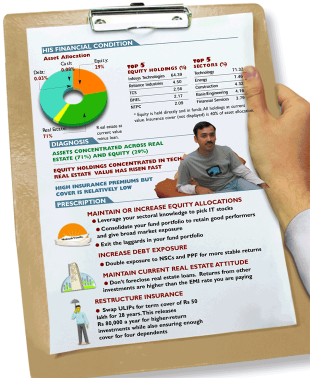 Debt portfolio: His penchant for equity and his real estate plays have served him well. At 32, such aggression is laudable. However, a slightly increased allocation to NSC and PPF would give his portfolio more stability due to the assured returns from these instruments.