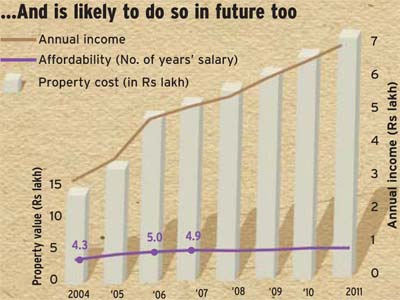 • After a steep rise in affordability from the mid-1990s up to 2004, the net impact of higher property prices and costlier home loans overtook the gains of higher income
