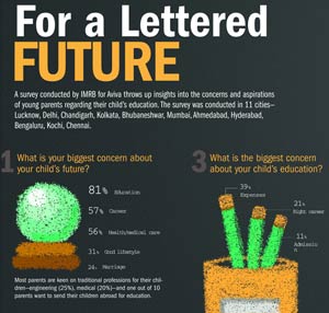 A survey conducted by IMRB for Aviva throws up insights into the concerns and aspirations of young parents regarding their child's education. The survey was conducted in 11 cities - Lucknow, Delhi, Chandigarh, Kolkata, Bhubaneshwar, Mumbai, Ahmedabad, Hyderabad, Bengaluru, Kochi, Chennai.