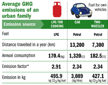 This figure may be lower than the average household emission in the West, but it is way higher than the carbon footprint of rural and low-income families. "It is the difference between owning two cars and none. If people incorporate the steps that we have suggested (see Small is not Costly), middle-class households can cut emissions by as much as 42 per cent," he says.