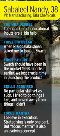 The Swach experience was an added advantage after his stint at Tata Motors, where Nandy was part of the sales team and handled 35 to 40 dealers in five western states. Today, he heads TCLs Rs 2,000-crore Haldia fertiliser plant, which employs around 1,200 to 1,400 people, including contract labourers.