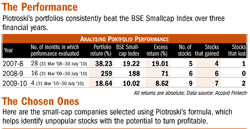 We analysed the figures for 2008-9 and found six companies, all small-caps, that satisfied Piotroski's criteria. We compared the price performance of the six-stock portfolio with the BSE Smallcap Index between March 2009 and July 2010.