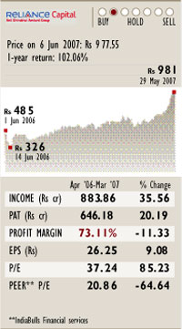 “Reliance Mutual Fund (Reliance MF) has been the fastest growing fund house with assets under management (AUMs) crossing Rs 50,000 crore mark in May 2007, up 8% from March 2007 numbers. The company is also positive on its portfolio management services and offshore funds and expects these to be other growth areas.