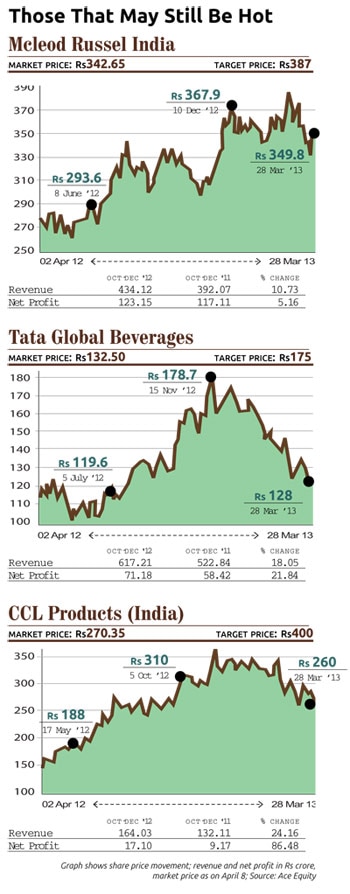 The stock of CCL Products, which returned over 175% in 2012, has fallen over 32% to Rs 259 this year till March 28. B&A Ltd, Bombay Burmah Trading Corporation and Tata Global Beverages returned over 75% in 2012. On March 28, they were 33%, 11% and 20% lower, respectively, than the December 31 levels. Bombay Stock Exchange Midcap and Smallcap indices fell 13.6% and 21%, respectively, during the period. Most tea and coffee stocks belong to midcap and smallcap categories.