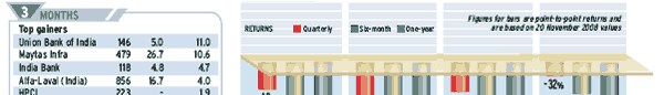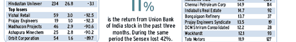 11% is the return from Union Bank of India stock in the past three months. During the same period the Sensex lost 42%.