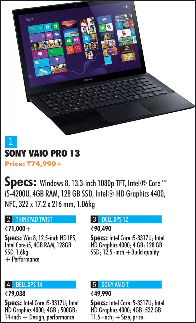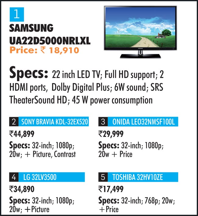 Televisions 40"+TabletsApple iPad AirLaptopsDell XPS 15 L501XTelevisions Samsung UA 22D5000NRL XLDesktopsLenovo Think Centre Edge 92ZDigital SLRSSony vaio Pro 13Digital point and shootNikon d800EUltrabooks and convertiblesSony NE X-5RMusic system and docksJBL OnBeat Xtreme
