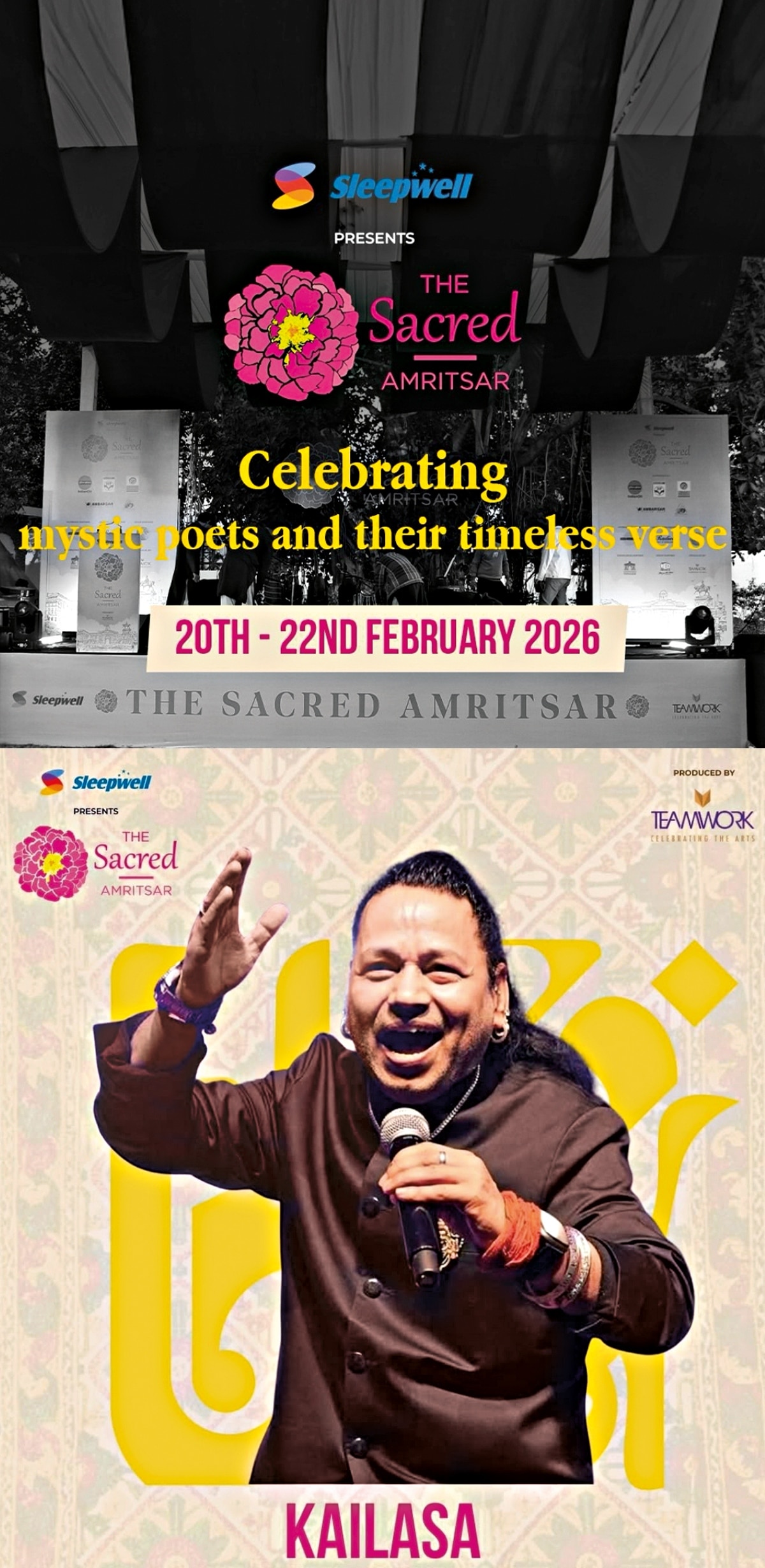 The Sacred Amritsar festival is an immersive celebration of mystic poetry, music, and living heritage in the heart of Punjab’s Golden City. Rooted in India’s spiritual and poetic traditions, the festival weaves together music, verse, conversations, heritage walks, and culinary experiences that reflect Amritsar’s enduring cultural soul. Produced by Teamwork Arts, the fourth edition unfolds across historic venues, including Qila Gobindgarh. The three-day programme features performances by Kailash Kher, whose powerful Sufi and folk-infused voice brings depth and devotion to the stage; Usha Uthup, the legendary performer celebrated for her distinctive voice and magnetic presence, seamlessly blending jazz, pop, and Indian sounds; The Kutle Khan Project, led by acclaimed folk musician Kutle Khan; and Indian Classical music ensemble The Anirudh Varma Collective.