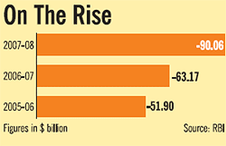 Impact: The negative trade balance has pushed the current account into deficit for the first time in seven years, during the January-March quarter of 2007-08.