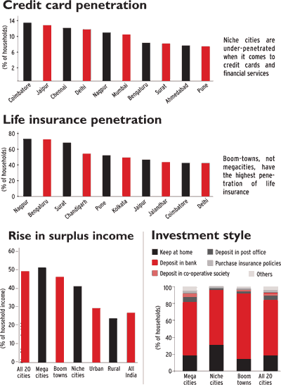 It is easy to rattle off the names of India’s megacities. But an insight into the emerging cities is far more interesting, be it from the point of view of affordable real estate, job prospects or a better quality of life. The National Council of Applied Economic Research, along with the Future Capital, has launched a book focusing on this. Titled The Next Urban Frontier: Twenty Cities to Watch, the book lists the eight usual suspects comprising the metros, Pune and Ahmedabad, along with 12 boom-towns and niche cities. The former stand out because they are quickly moving up the ranks as the largest consumer markets after the megacities. This chunk— Surat, Kanpur, Jaipur, Lucknow, Nagpur, Bhopal and Coimbatore—has also posted the fastest growth in disposable incomes since 2000. Niche cities may be smaller in terms of population but their household expenditure is nearly the same as in the megacities. In fact, these cities—best represented by Faridabad, Amritsar, Ludhiana, Chandigarh and Jalandhar—have the highest spending propensity among the three city groups. Here is a look at some interesting spending and investment patterns in these cities: