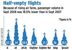 All of this may have come as a nasty surprise given that till June last year the aviation sector was boasting Rs 0 fares, 40% growth in passenger numbers and dizzying expansion. Sure, airlines were posting losses—Jet Airways lost Rs 2.53 billion last year and Kingfisher recently reported a nine-month loss of Rs 1.88 billion—and aviation turbine fuel prices have been an omnipresent worry, up 54% since October 2007 despite the recent cuts. But that is hardly news. So why the sudden brouhaha, pink slips, fewer flights et al?
