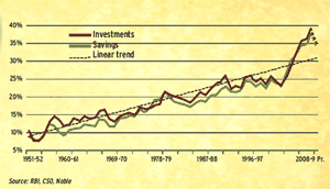 The recent increase in savings and investments has helped economic growth. Noble Group says in FY09, India's rates will moderate by 3-4%, but revert to long-term rates by H2FY10.Money back