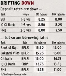 One man's meat is another man's poison. Earlier this month, SBI lowered the rate on fixed deposits by 0.25%. The cut comes less than a month after a reduction in April. The bank's popular 1,000-day deposit will now earn only 8% a year. Six months ago, the same deposit was offering 10.5%. Other banks too have cut their deposit rates in the past two weeks (see table). If you were planning to invest in a fixed deposit, the fall will hurt. But the drop in interest rates has given borrowers a reason to smile. The banks have also reduced lending rates. The 50 basis point reduction in the floating reference rate of the ICICI Bank will be especially welcomed by its floating rate home loan customers: it will shave off about Rs 700 from the EMI of a Rs 20-lakh loan for 20 years. Of course, the bank will not reduce the EMI, but the tenure. That's still a relief for borrowers whose tenures had shot up from 20 years to almost 30 after a rise in rates in the past three years.