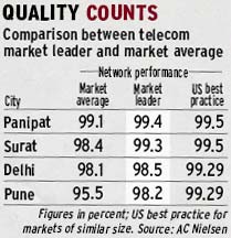 Telecom tariffs have gone down sharply in the past couple of years, but so has the quality of service. While companies seem to believe that subscribers choose operators based on tariffs alone, research by AC Nielsen suggests otherwise—it is network quality that is on top of mind among consumers. According to a survey conducted across 10 cities, 42% of subscribers rate network performance as very important in choosing the operator. With significant differences in service quality (see table), the solution may lie in mobile number portability. In six months, you will be able to change your existing service operator while retaining your mobile number. The Department of Telecommunications (DoT) has given the licence to MNP Interconnection Telecom Solutions to roll out the system in two phases. The catch, though a minor one, is that there may be a fee (Rs 200 or so) for number portability. It should be worth it, if you get better service.