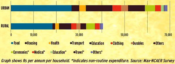 A look at the rural consumption basket, compared to the urban consumption, gives a fair idea of the sectors that are likely to benefit from the centre’s renewed focus on rural spending. The rising food prices (food bill is the single largest component of consumption) will also impact spending.
