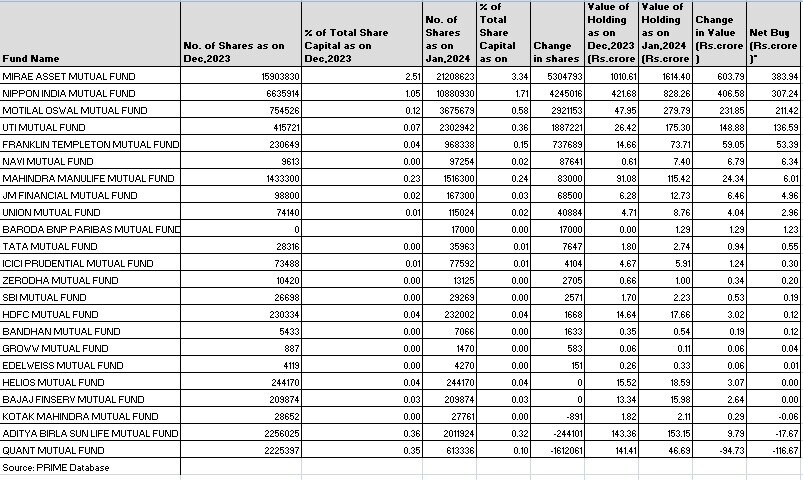 Nippon India Mutual Fund upped its exposure in Paytm by 42.45 shares. It owned Rs 828.26 crore worth Paytm shares in January against Rs 421.68 crore in December, up 406.58 crore month-on-month. It was a net buyer of Rs 307.24 crore Paytm shares, PRIME Database suggested.