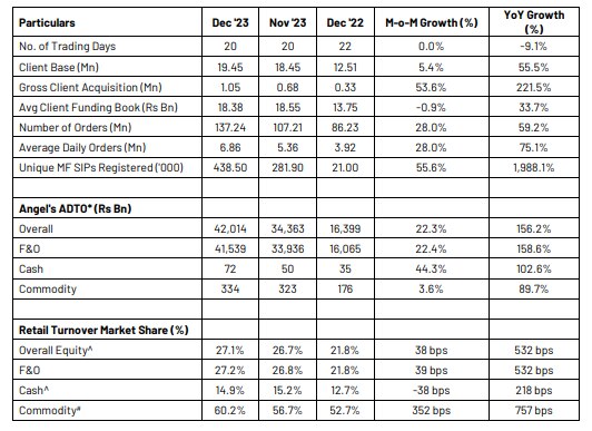 Angel One said gross client acquisition jumped 149 per cent YoY to 24.6 lakh against 21.2 lakh in the September and 9.9 lakh in the same quarter last year. The average client funding book stood at Rs 1,859 crore in the December quarter against Rs 1,416 crore in the same quarter last year. On a sequential basis, average client funding book was up 32.1 per cent over Rs 1,407 crore in the September quarter.