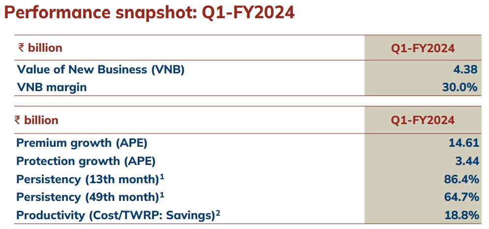 Value of new business (VNB) came in at Rs 438 crore, with VNB margin at 30 per cent.