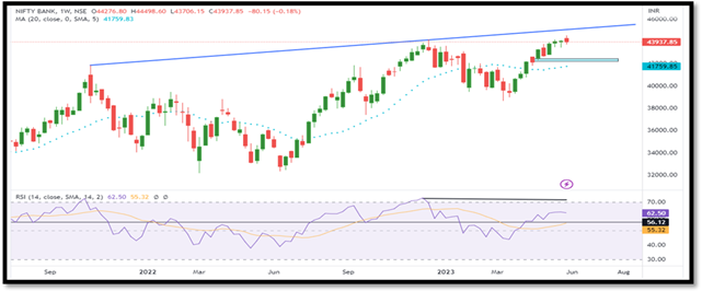 Nifty Bank Put options distribution shows that the strike of 43,000 has the highest open interest (OI) concentration, which may act as support for current expiry.There was a lot of shuffling in the Indian market last week, mostly related to macro-economic data. The US Senate passed US debt ceiling deal, averting a US default.