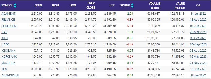 Shares of Adani Enterprises, Reliance Industries, Shree Cement and ICICI Securities on the other hand, saw huge turnover on NSE. Data showed Adani Enterprises topped the turnover chart with a turnover of Rs 1,488 crore on NSE. Reliance Industries saw a turnover of Rs 961 crore. Adani Enterprises rose 2.8 per cent while Reliance Industries was trading 0.8 per cent lower. Shree Cement's turnover stood at Rs 777 crore.