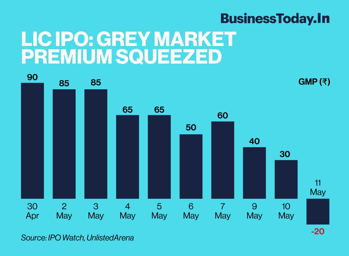 According to a market watcher, LIC is hovering at a discount of Rs 20 in the grey market. Earlier, the GMP of the insurance behemoth was hovering around Rs 90 on April 30. Grey market premium is a premium amount at which grey market IPO shares are traded before they get listed on the stock exchange.