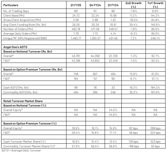 Angel One said its gross client acquisition stood at 9.4 lakh in June against 8.8 lakh in May and 4.8 lakh in the year-ago quarter.