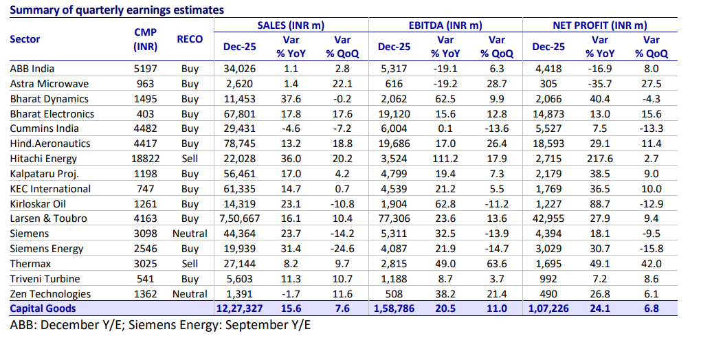 HAL, MOFSL said, may report 29.1 per cent YoY rise in profit at Rs 1,859.30 crore on 13.2 per cent YoY rise in sales at Rs 7,874.50 crore.MOFSL, in its Q3 preview note on capital goods & defence, maintained 'Buy' rating on Bharat Electronics Ltd (BEL), Bharat Dynamics Ltd (BDL), Hindustan Aeronautics Ltd (HAL) and Astra Microwave; and 'Neutral' rating on Zen Technologies. It said BEL is its top defence pick.