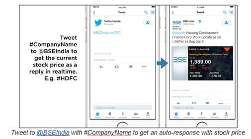 through Twitter very useful. We believe this association will also aid in fulfilling the mission of Digital India," said Ashish Kumar Chauhan, MD & CEO, BSE India.