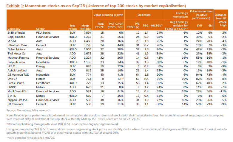 Momentum investing, ICICI Securities explained, is based on the principle that stocks which have outperformed over the past six to twelve months and are approaching their 52-week highs, often driven by earnings upgrades, are likely to continue their positive trend over the next one to twelve months.