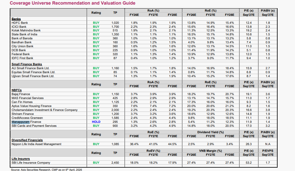 Axis Securities remains selective but optimistic, issuing 'Buy' calls across the sector. In the banking space, the brokerage has set a target price of Rs 1,020 for HDFC Bank Ltd, while ICICI Bank Ltd commands a target of Rs 1,700.