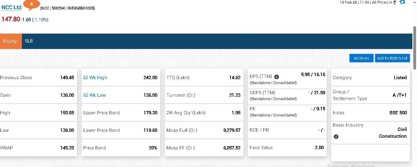 NCC shares crashed 9% to a 52-week low of Rs 136 today against the previous close of Rs 149.45. Market cap of the firm stood at Rs 9,285 crore.