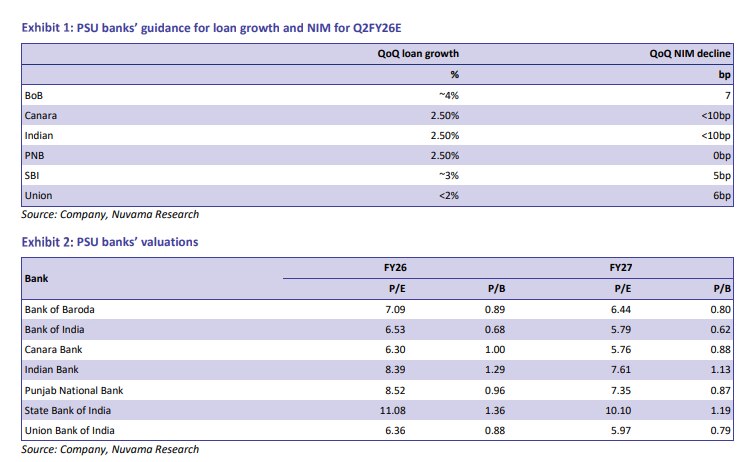Union Bank and Canara Bank have a higher share of written-off recoveries relative to other state banks.Public sector banks (PSBs) are expected to report healthy loan growth and only moderate pressure on net interest margins (NIM) in the September quarter, according to Nuvama. Bank of Baroda has guided for strong sequential loan growth of 4 per cent or more, while Punjab National Bank (PNB), Canara Bank, and Indian Bank have projected growth of around 2.5 per cent quarter-on-quarter. Union Bank is likely to grow at a slower pace than the sector.