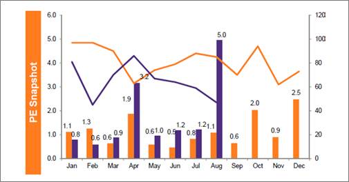 The overall deal activity (M&A and PE) in August 2017 witnessed a strong two-fold increase in values primarily driven by big ticket transactions which drove average deal size to 62 million from 21 million in August 2016. While PE investment values drove growth in values, low PE volumes resulted in 29 per cent y-o-y decline in overall deal volumes.