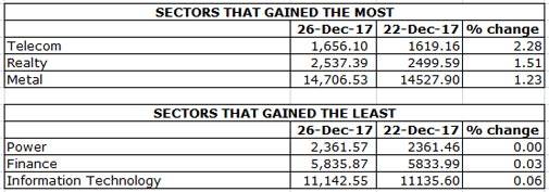 In a historic day for Indian markets, the Sensex and Nifty closed at record highs three sessions ahead of the New Year on upbeat investor sentiment in metal and healthcare stocks.