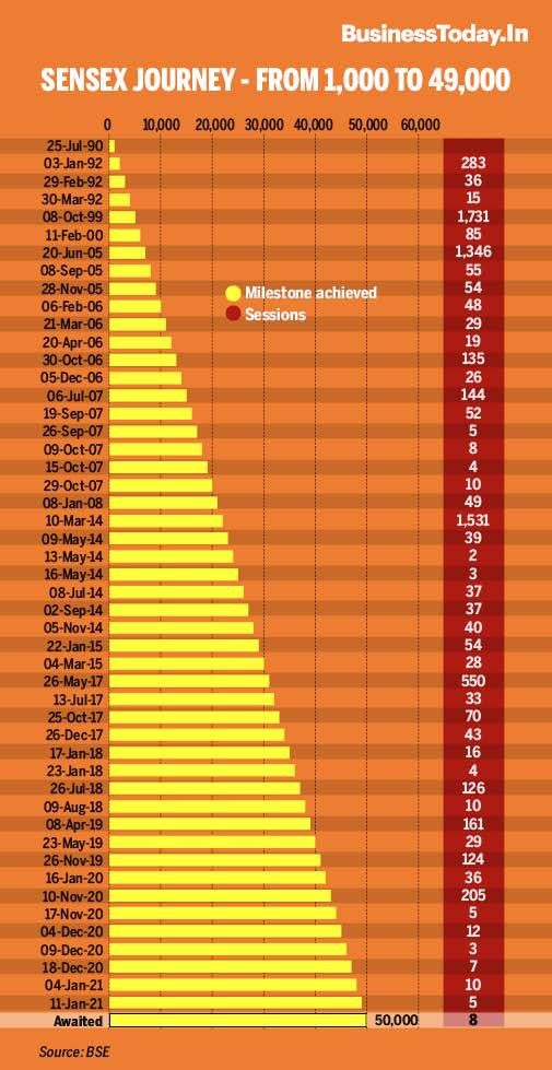 Sensex hits 50,000: A roller coaster ride of 9,000% in 34 years