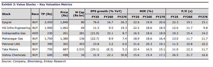 "We focused on stocks where the FY26-27E average ROIC exceeds the FY21-25 average to identify stocks in a positive profitability cycle. 2) The valuation filter is P/B, which is our preferred metric to assess long-term cyclical stocks, as earnings are volatile and prone to frequent revisions. We have set a five-year LTA as the benchmark and filtered stocks with P/B below this level. 3) We have also set a ceiling of a 20x PER (1YF) to ensure we pick stocks below Nifty valuations," Emkay said.