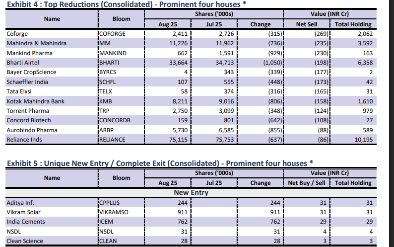 Meanwhile, Vikram Solar, India Cements, NSDL and Clean Science were new entries. Inox India, Lemon Tree Hotels, Anant Raj and Digitide Solutions were complete exits, Nuvama data showed.
