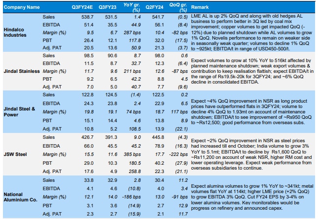 For Hindalco, it believes the company is well-placed among metals space as Novelis is expected to witness gradual improvement in per tonne Ebitda over next few quarters, softer thermal coal prices and opening of captive coal mines to benefit India business; and rising focus on high margin value added products.