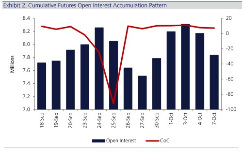 The current series has started with a cumulative future open interest of 7.6 million shares against the last 3-series average of 5.8 million shares observed on the day of inception. Open interest currently stands at 7.8 million shares.